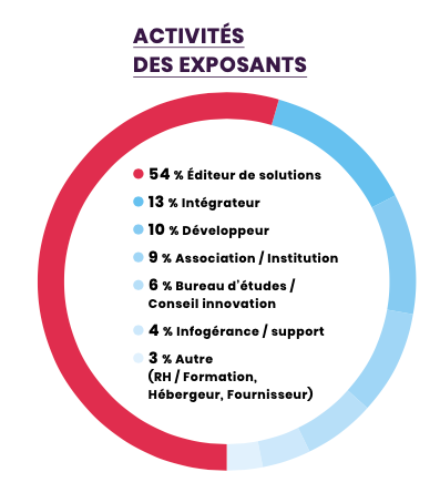 Rencontrez près de 4 000 professionnels porteurs de projets ciblés et issus de sociétés du numérique, d’entreprises de développement, administratrices systèmes & réseaux ou de sociétés expertises technologiques… de professions SI aux directions digitales, innovation et métiers. Une audience à la découverte des dernières tendances en matière d’innovation et à la recherche de nouveaux partenariats technologiques.