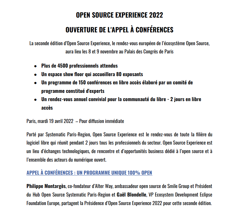 L’Open Source en ébullition pendant 2 jours ! Dossier de presse